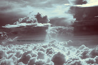 Saya lagi asyik memandang keluar jendela, dari jauh saya melihat setumpukan awan yang begitu menawan. Saya sangat gelisah dan ingin sekali memotret, tapi kamera tidak ada di tangan saya. Kamera tersebut tersimpan di dalam kabin pesawat di atas tempat duduk saya. Saya kuatir tidak bisa mengabadikan momen tersebut. Saat saya sedang berpikir, lewat sang pramugari...aaa...haaa ;-) dan tanpa pikir panjang saya minta tolong diambilkan kamera kesayangan saya itu. Akhirnya dapat juga moment indah ini :-)